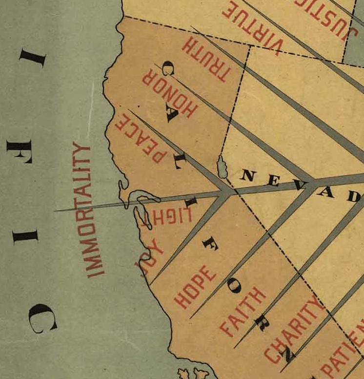 The general gist of the map is showing how slavery is a path that leads to sin and the devil, while liberty is just and right in the eyes of god. There are two paths being shown, one in the northern states starting from the bible and one in the southern states. Currently, the “tree” of slavery is being chopped down by the axe of the emancipation proclamation while the tree of liberty has grown all the way through to the west coast.